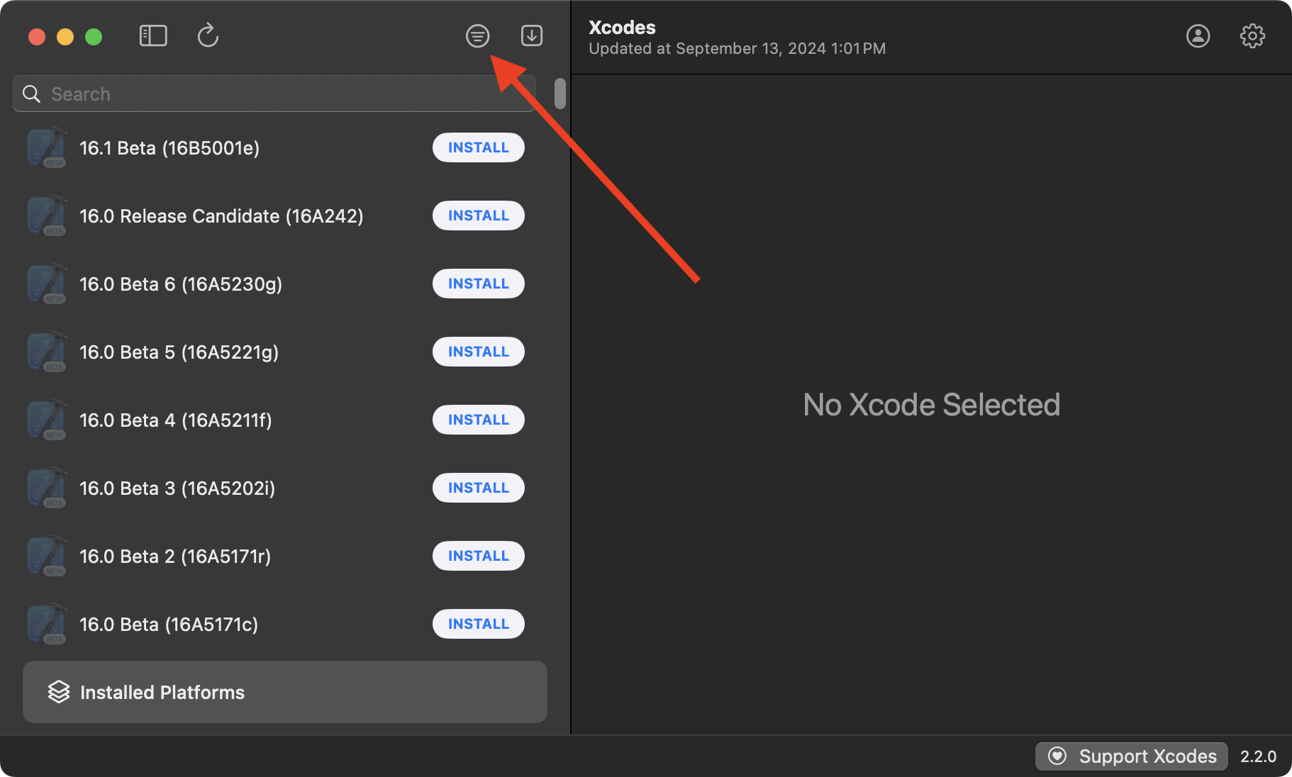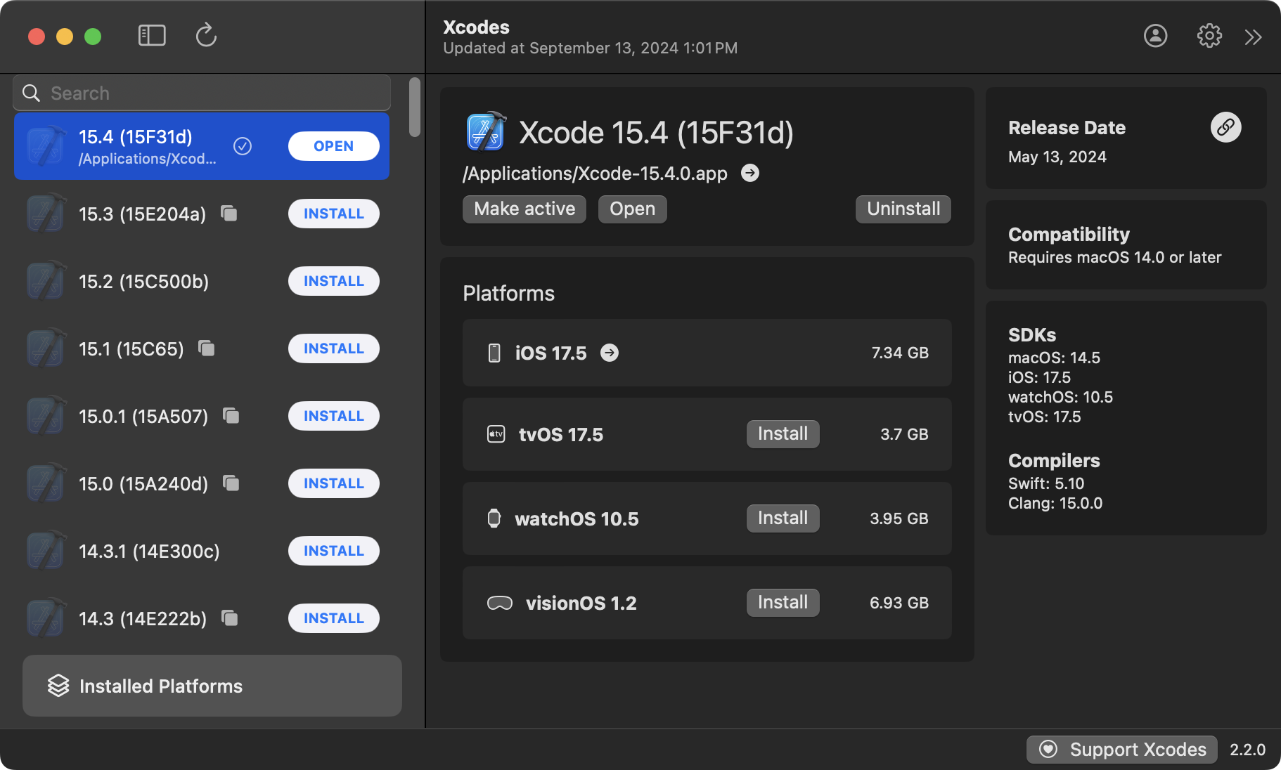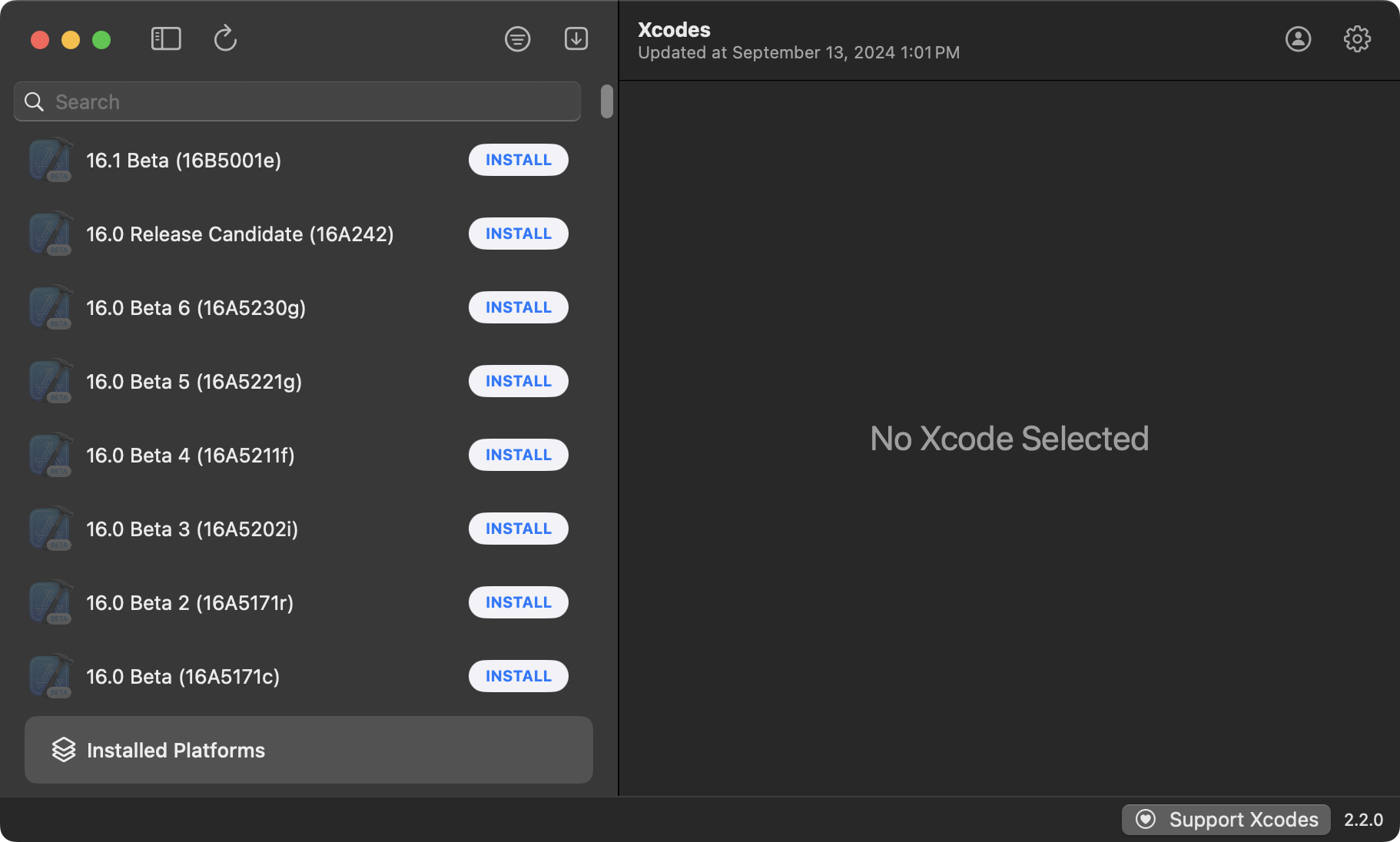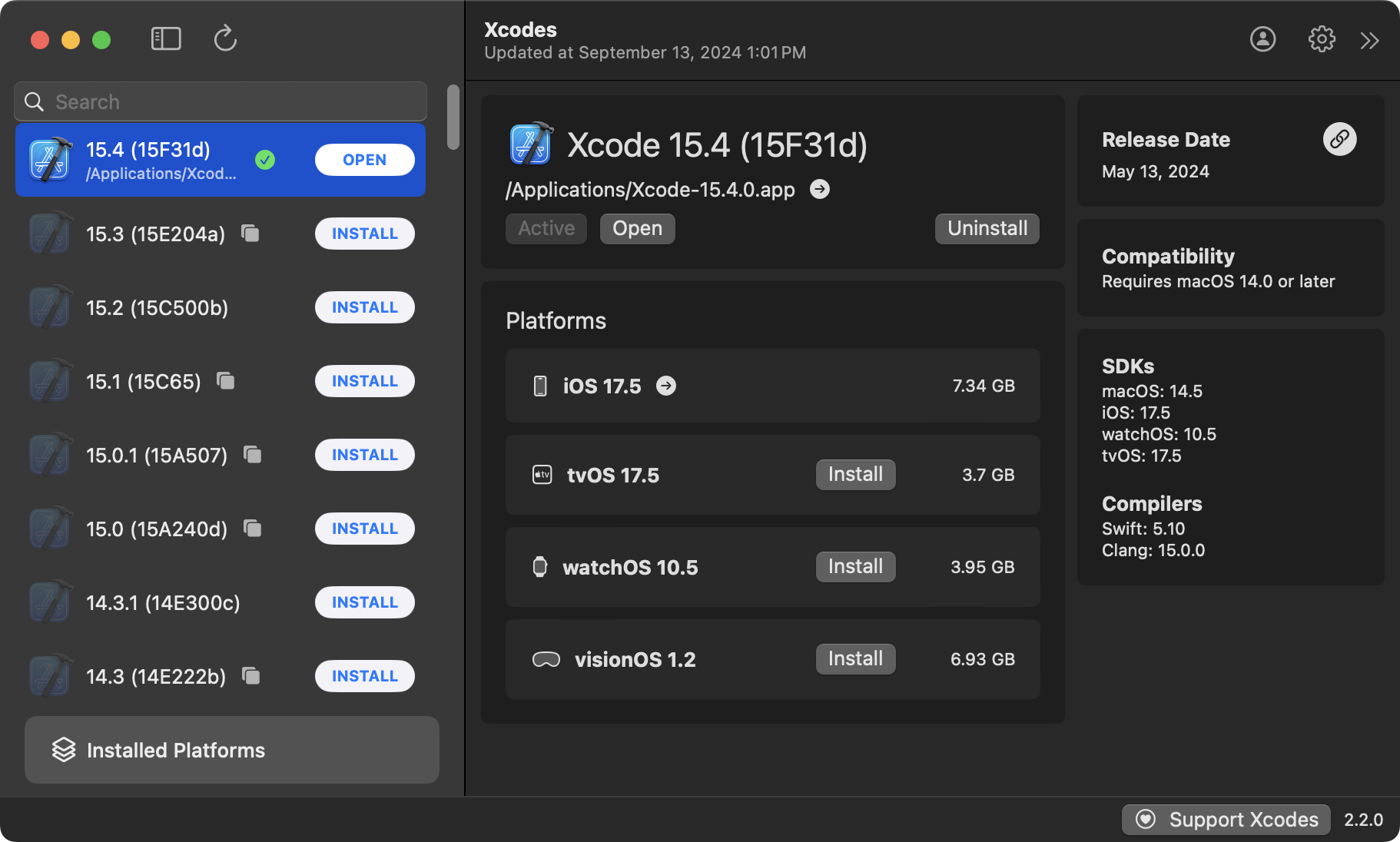 Recall that Xcodes is an app used to manage the installation of different versions of Xcode: