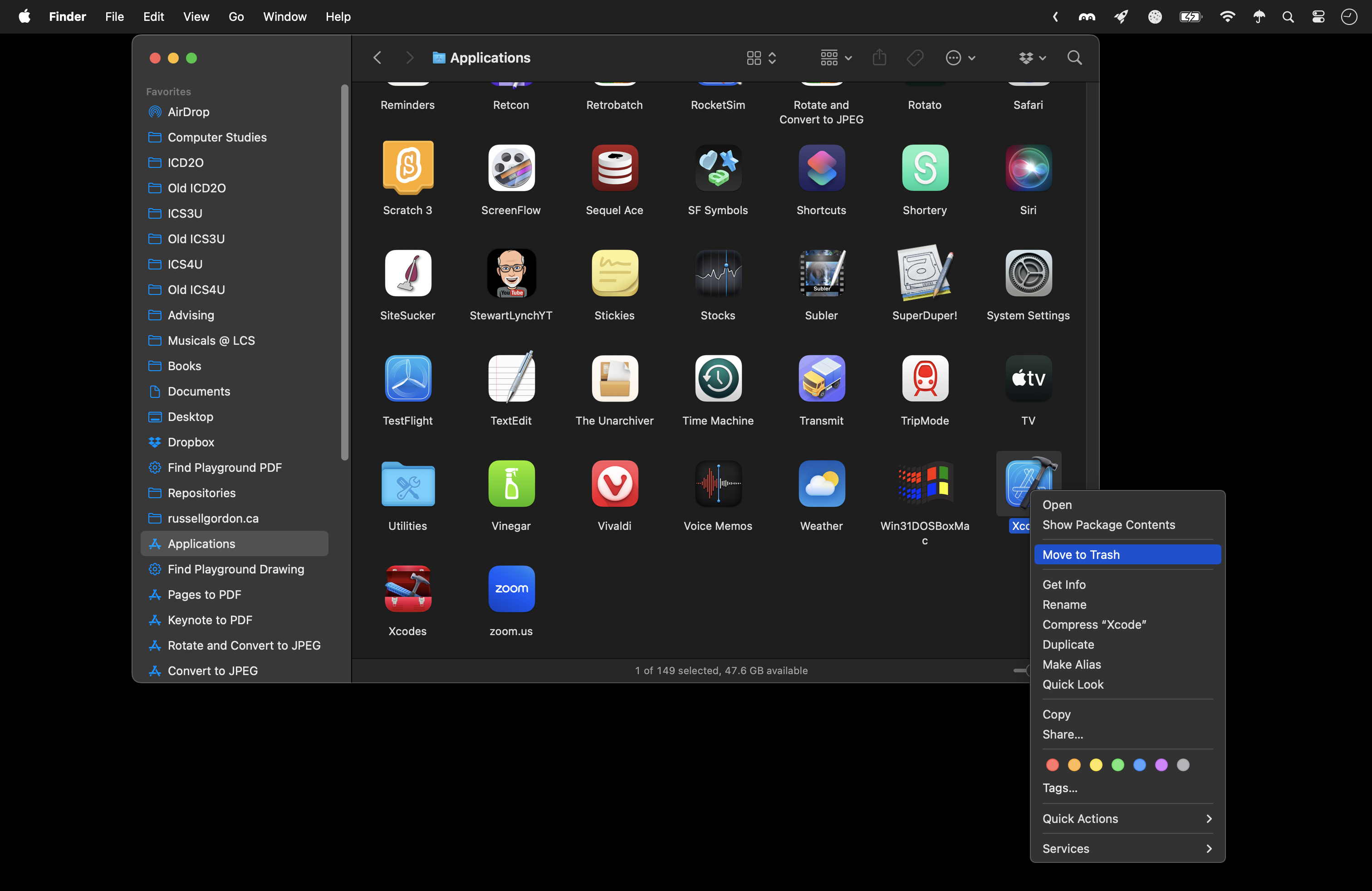 If you see Xcode installed as shown – with the name Xcode alone – please move that version to the trash on your system: