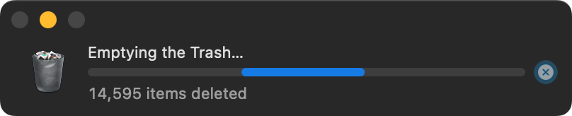 Emptying the trash may take a couple of minutes to complete: